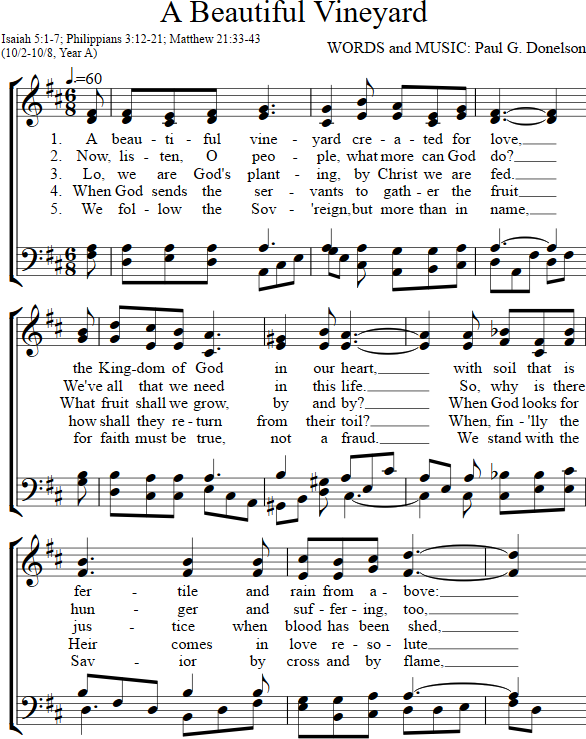 Will, But Don't Want Exodus 17:1-7; Philippians 2:1-13; Matthew 21:23-32 There is something irresistible about God's will for those who are open to the movement of God's Spirit in their lives. What I mean to say is this: If God wants you or any of God's people to do something, whether it be something simple, like go to church, or visit a friend, or care about someone in need; or even if it is something more difficult, like go into the ministry, or building a church; this thing that God wants you to do will be difficult to refuse, especially if you are open to the movement of God's Spirit in your life. My wife and I have seen this happen in our own ministries over and over again. And it isn't because we were any more open to the movement of God's Spirit than any other Christian, for it happens with all of us. But, I can remember one instance where this happened to us while we were in our final year in seminary, over twenty years ago. Knowing that we would soon be appointed to churches somewhere in Iowa, my wife and I began to do something that just about all ministers do when they think they are up for appointment. We took out a map of Iowa and began to look and dream about all the possibilities. And as we looked at that map of Iowa we wondered what God had in store for us. Would it be Northeastern Iowa, with all of its beautiful, tree covered rolling hills? Would it be Central Iowa, with it's broad fields of corn and soy beans? Would it be Southwestern Iowa, with it's smaller farms and countless rivers? And I remember how as my wife was looking at the map that she suddenly became a bit excited at finding a small town northwest of Des Moines which had the same name as her maiden name: Cooper. And I remember how she and I laughed about the irony of if, somehow, we were appointed to the town of Cooper. And I remember how Linda and I said to each other, "Nah, it would never happen." Linda Cooper Donelson could never be the pastor of the church in Cooper, Iowa. It would be too unreal. And, yet, several months later we were appointed to a parish with nine churches. And guess which town was within that parish? That's right -- Cooper, Iowa! And, Linda, my wife became the pastor of the church in that town. Indeed, there is something which is irresistible about the will of God for those who are open to the movement of God's Spirit in their lives. And, for those of us who are open to the movement of God's Spirit in our lives, the twists and turns along our journey which may only seem like irony, and coincidence, and mere happen stance, may actually be God speaking his gentle "I love you" in the ear of our soul. There are many things that God, that wonderful divine parent, asks us, God’s children, to do. In our gospel lesson for today we are reminded of this simple fact. Jesus' parable of the two wicked sons is a classic example of how we sometimes respond when God calls upon us to do God’s work. The parable starts out with a father asking one son to go to work in the vineyard and the son just blatantly answering that he just will not go. And as this wicked son goes out the door, his conscience gets the best of him and he changes his mind and does his father's bidding. Then the father asks his other son to go work in the vineyard, and the other son says that he'll do it, but, in fact, he never goes. Now, just what was Jesus trying to get at when he told this parable. I've often wondered why there wasn't a third son; a son who was asked to work in the vineyard, said "yes" and then did it. For, indeed, there are those who are obedient. And, yet, when you really examine this possibility closely, you have to admit that there was only one truly obedient Son. And his name was Jesus Christ. And no matter how hard we may try we can never truly, fully, and completely be the obedient Son that Jesus was. Instead, there are the two types of God's children. There are those who hear God telling them to go serve in the vineyard: to do those difficult tasks, such as helping in the nursery, or leading a choir, or teaching a sunday school, or serving on a committee, or supporting programs that help the needy. There are those who hear God asking them, "Are Ye Able?" And for the most part, what is our answer to God when we hear the call? Either we cheerfully and almost casually answer that we'll do anything God wants and then forget about it as soon as the worship service is over. Or there are those of us who say "no", at first, and then change our minds as we have a chance to meditate upon it for a while. Certainly, there are those of us who have answered both ways when God has come knocking on our door. And we who have cheerfully, even casually, committed our prayers, presence, gifts, and service, without following through may have even caught ourselves, from time to time, looking down upon those who may have said they wouldn't serve, but later changed their mind. But, the question that Jesus asked his disciples should be asked of us, as well: "Which child of God did what his Father wanted?" Which child of God are we? The apostle Paul was always one who struggled with the question of his obedience towards God. Often, in his writings Paul would explain that no matter how hard he tried there was always something that he was doing or not doing which caused him to fall short of God's expectations. Even the apostle Paul knew that he wasn't the good Son who quickly, obediently and gladly did everything God wanted him to. Therefore, it was Paul who offered Christ to the world. For Christ was the only obedient Son who not only willingly and gladly worked in his Father's vineyard, but who also went forth to die upon the cross on our behalf, "That," as Paul wrote, "at the name of Jesus every knee should bow, in heaven and on earth and under the earth, and every tongue confess that Jesus Christ is Lord, to the glory of God the Father." As I said before, there is something, indeed, irresistible about the will of God in the l
